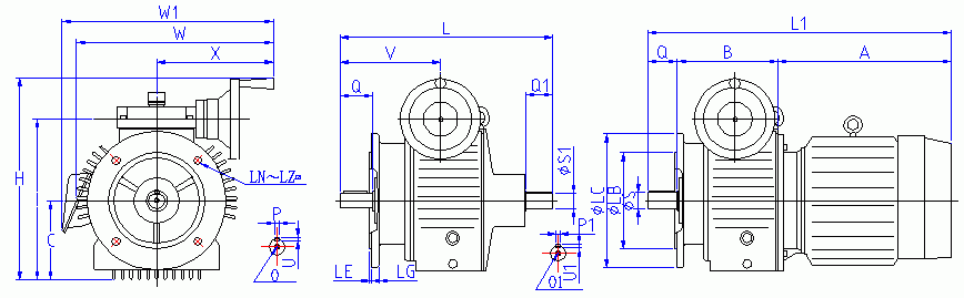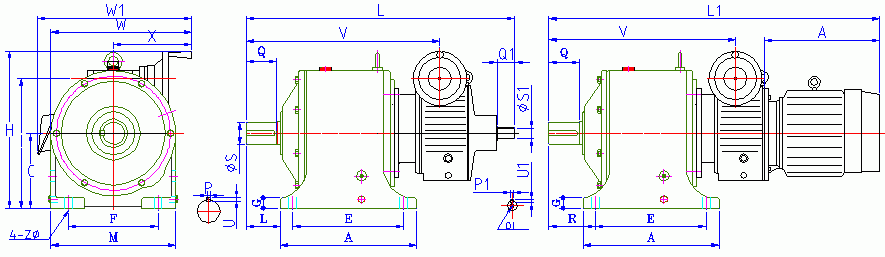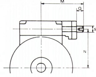 在机器不能直接调整时,可利用机械遥控装置调整速度,其连接方法如万向接头,弹性轴或链条与链轮来连接速度控制轴与传动手轮,但控制位置应在DISCO适当距离内.DISCO两种主要的速度控制轴已予标准化以便快速交货. A. 直轴型 B. 正交齿轮型